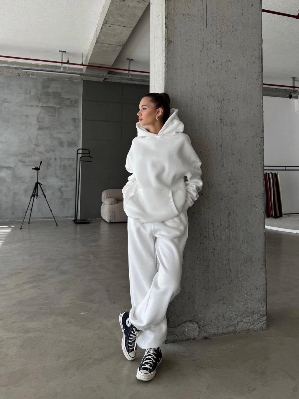 KAZAX markasının 3 iplik şardonlu Lastik paça eşofmanı beyaz renkte şıklığı ve rahatlığı bir arada sunuyor. Hem spor yaparken hem de günlük hayatta şıklığından ödün vermek istemeyen kadınlar için ideal bir seçenek.