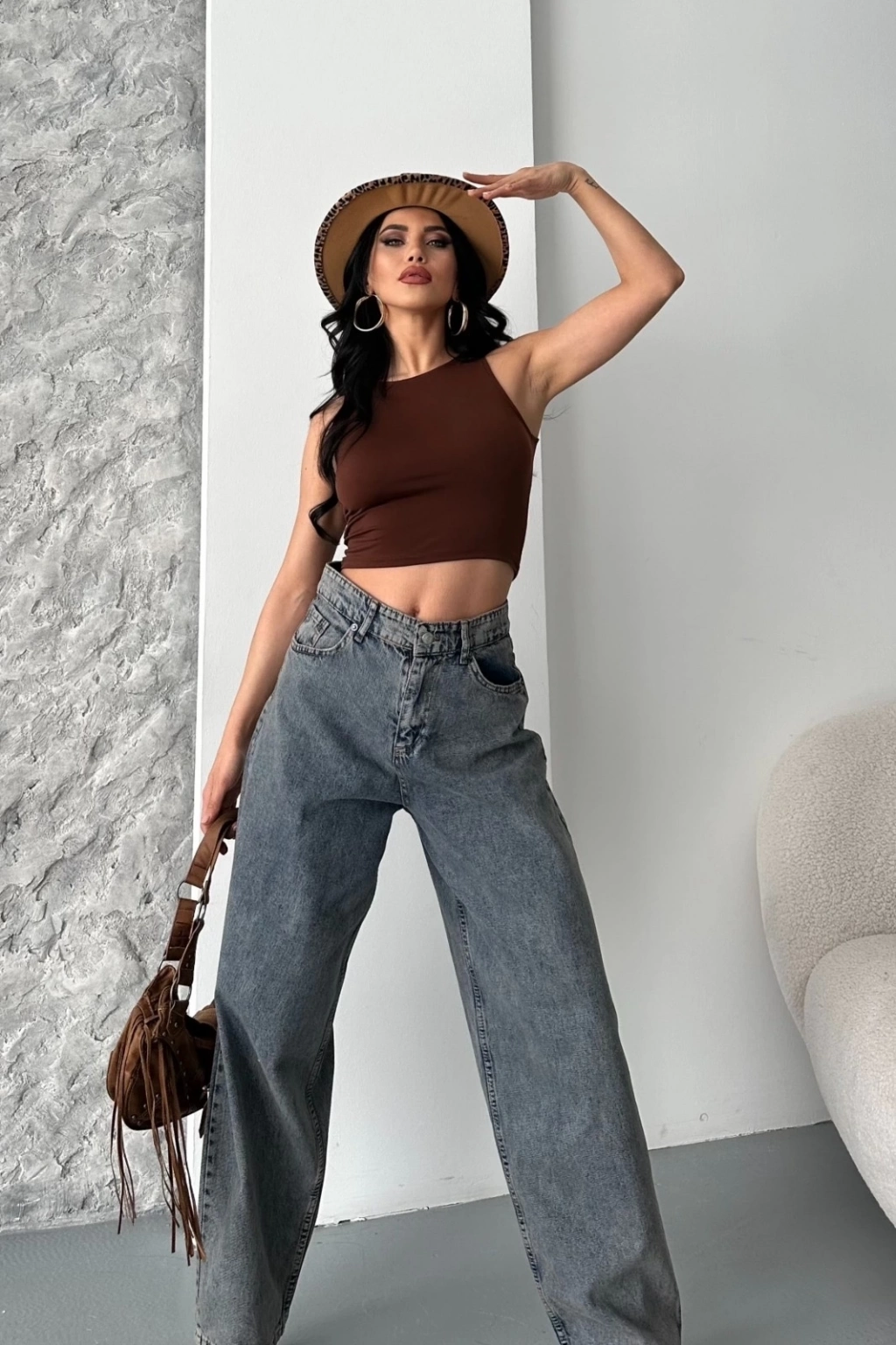 Baggy kar yıkama eskitme kahve jeans pantolon d2007, rahat ve şık bir görünüm sunar.