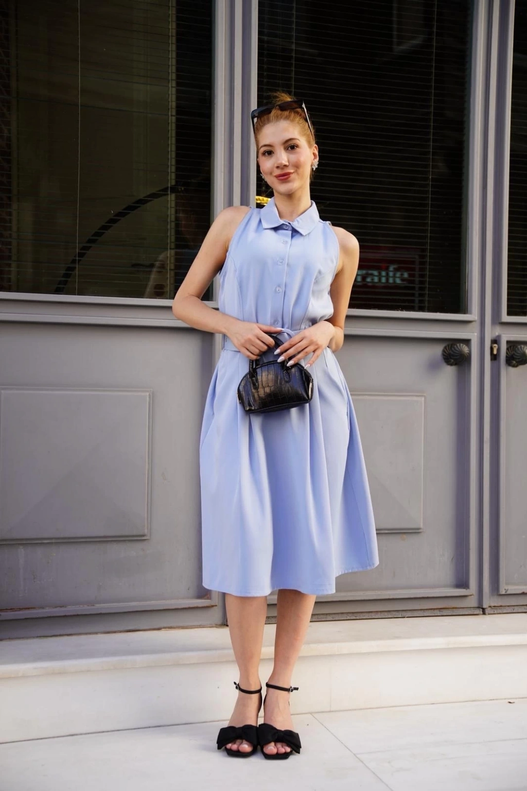 Şıklığı ve rahatlığı bir arada sunan Gömlek Yaka Kemeri Elbise Mavi, gardırobunuzun vazgeçilmez parçalarından biri olmaya aday!