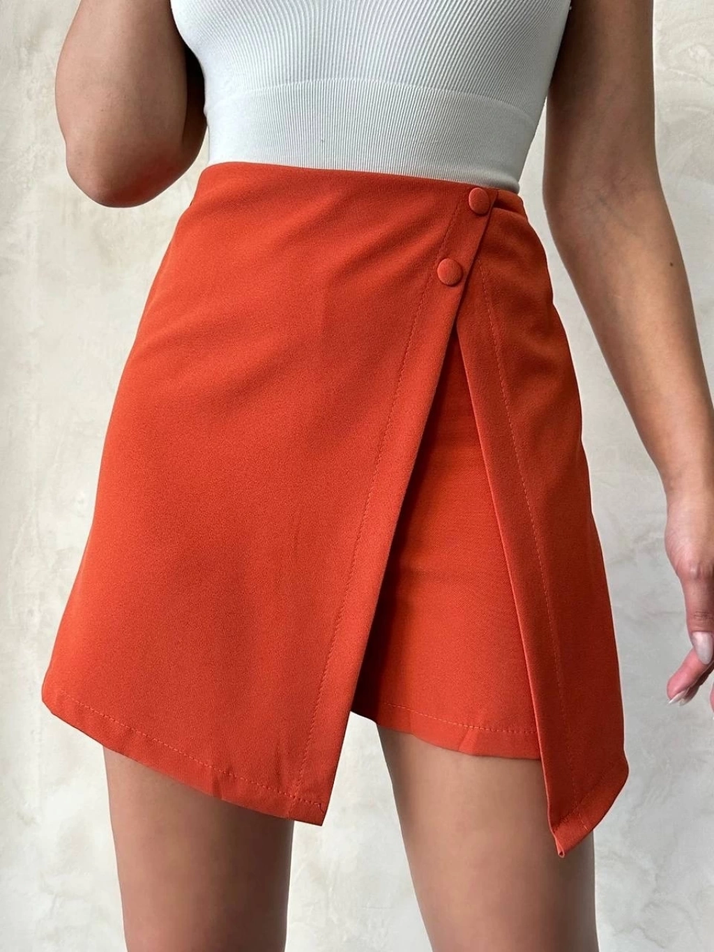 - Belinde bulunan iki düğme detayı, şort eteğe modern bir hava katmaktadır.