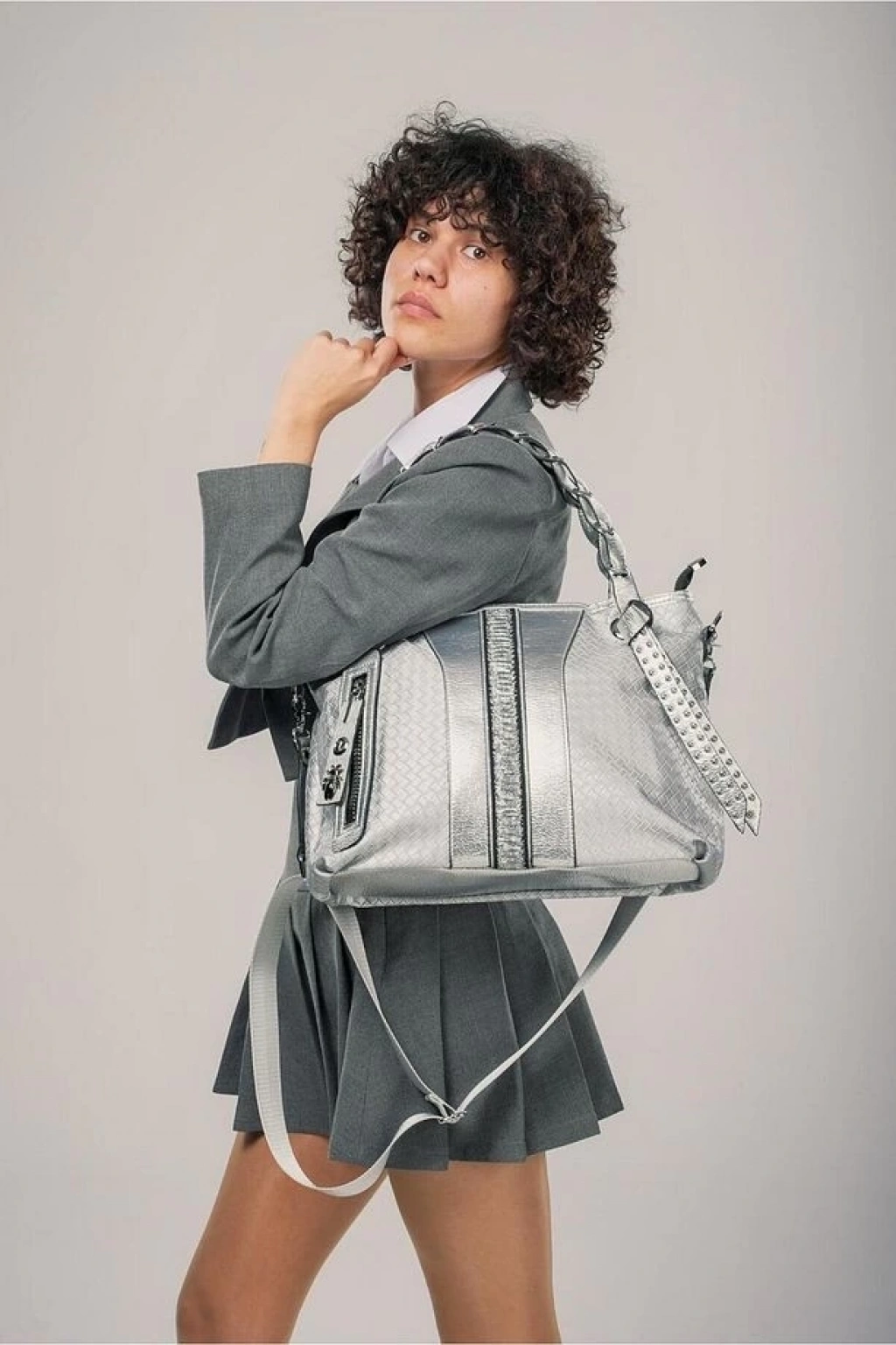 Tiven Gri Cilt Omuz Ve Kol Çantası
