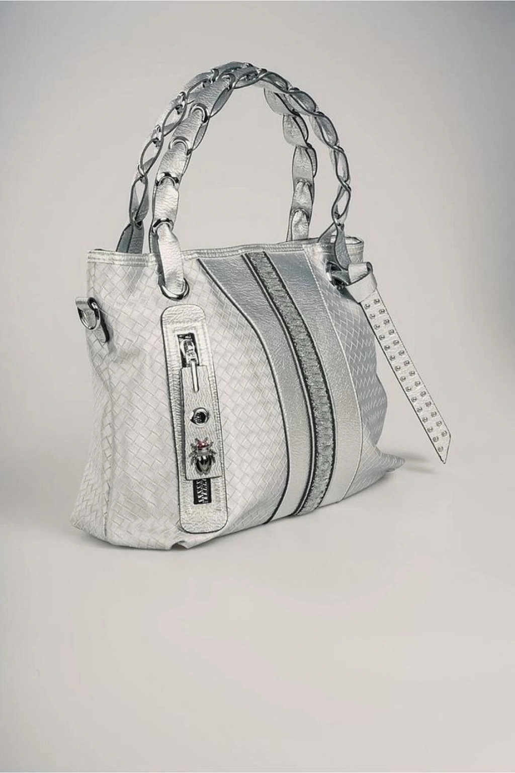 El yapımı zincirli incili çanta beyaz