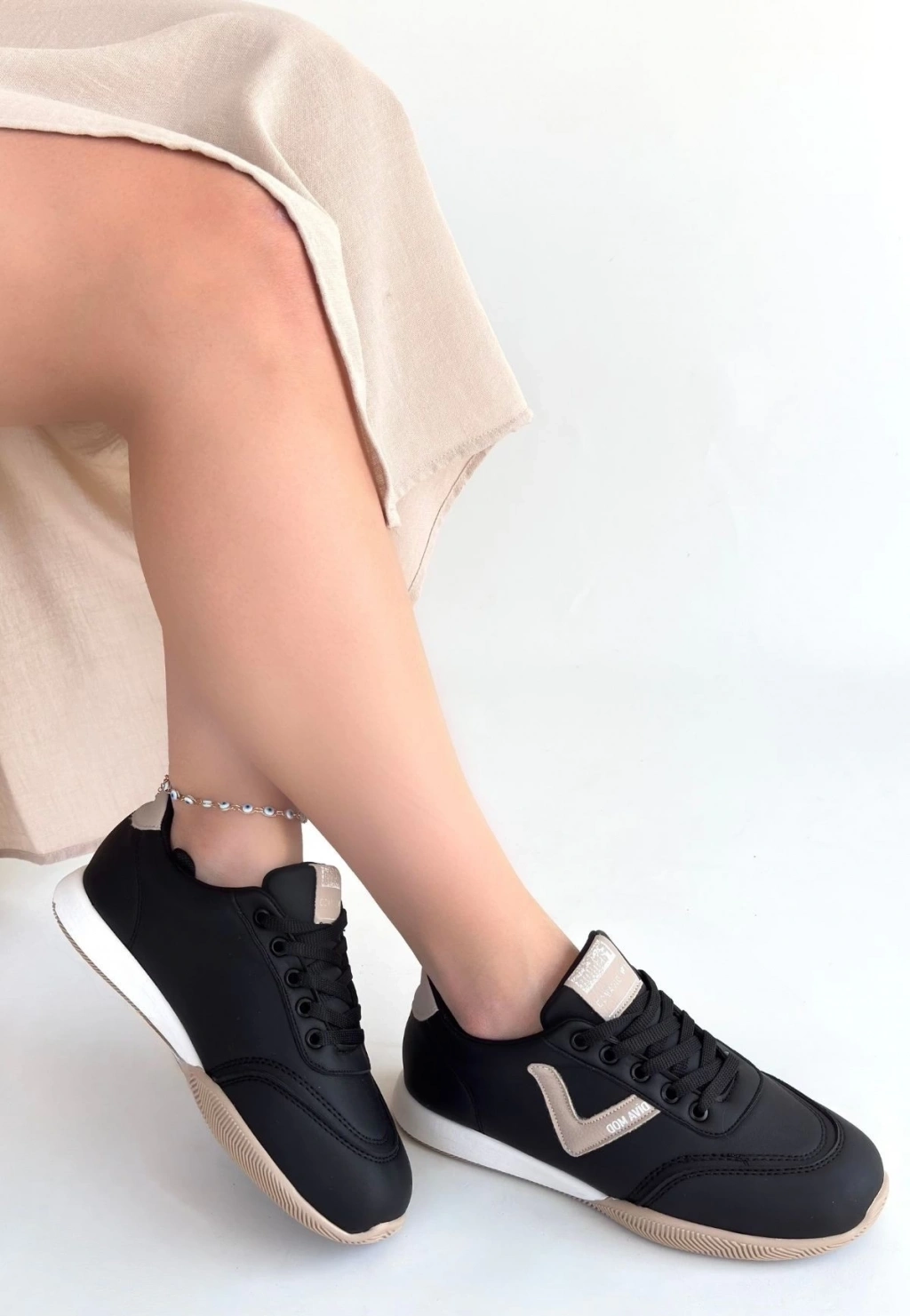 • Jowen Siyah Cilt Bej Detaylı Bağcıklı Spor Ayakkabı