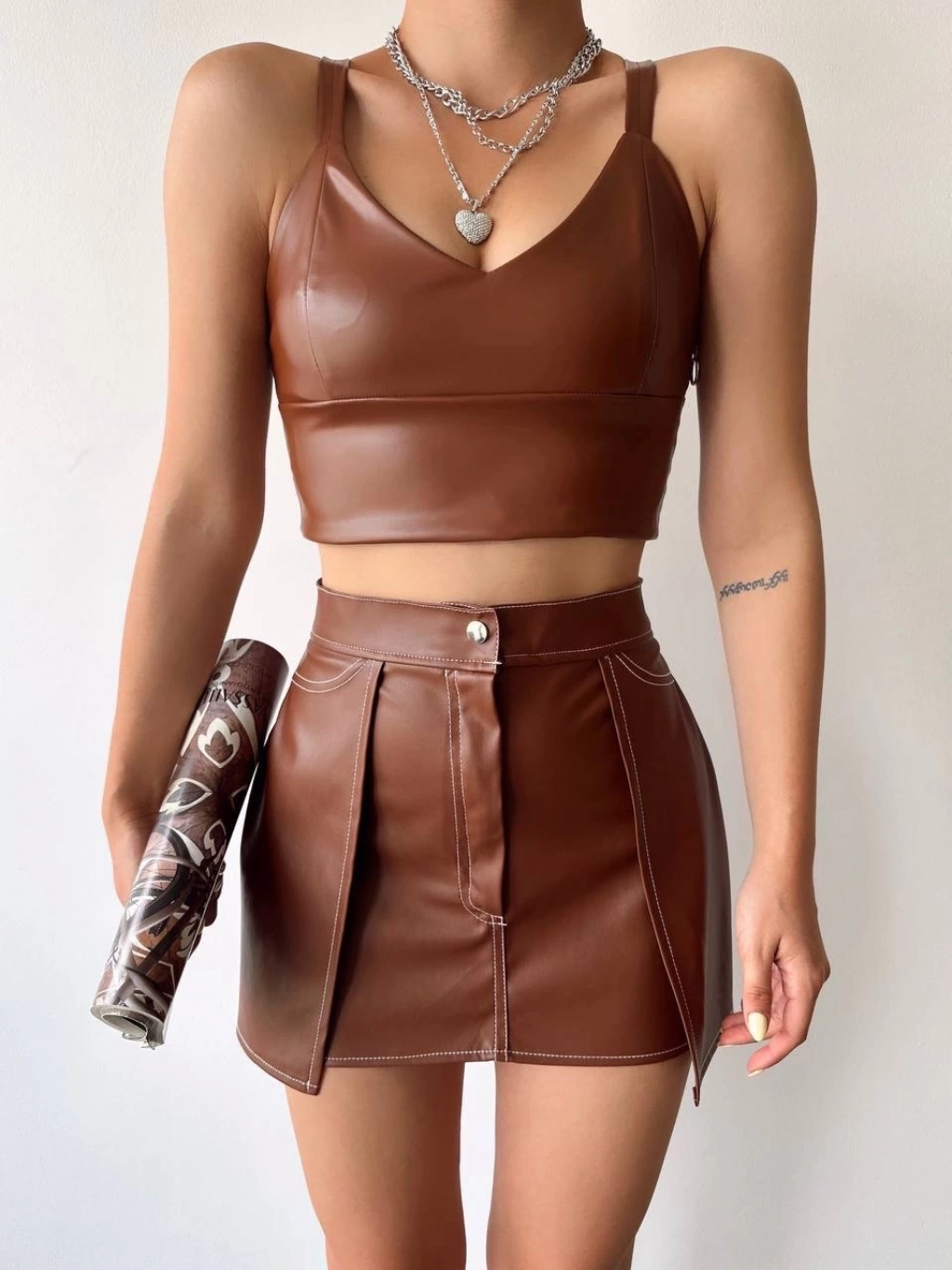 Şıklığı ve rahatlığı bir arada sunan Kontrast deri etek, gardırobunuzun vazgeçilmez parçası olmaya aday!