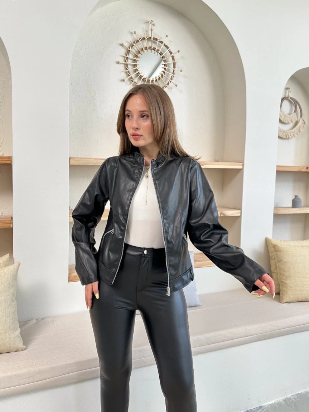 • Şık ve modern tasarımıyla dikkat çeken mevsimlik deri ceket, gardırobunuzun vazgeçilmezi olmaya aday.
