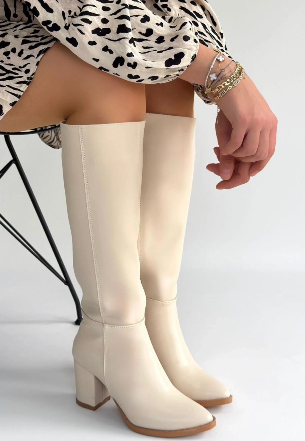 Detay: Topuklu Diz Altı Yandan Fermuarlı Çizme