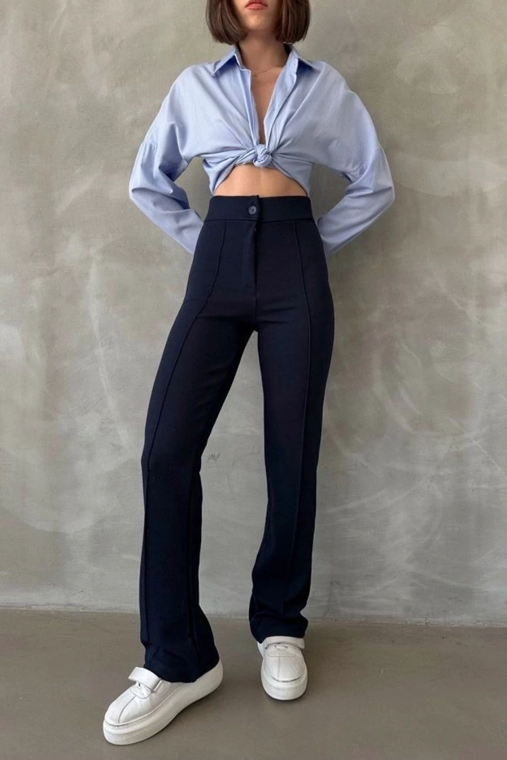 Yüksek bel detayı ile vücudu rahatça saran bir kesime sahiptir.