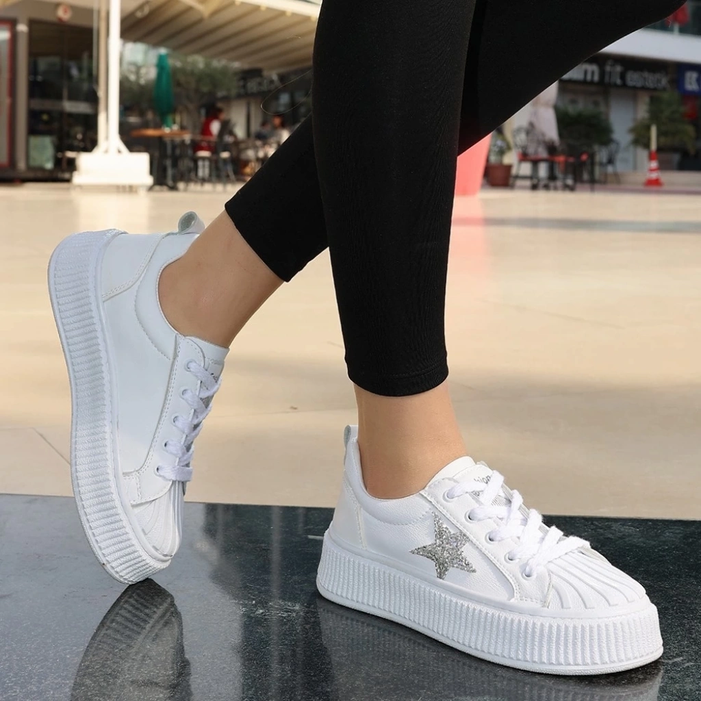 Piata Beyaz Cilt Bağcıklı Spor Ayakkabı