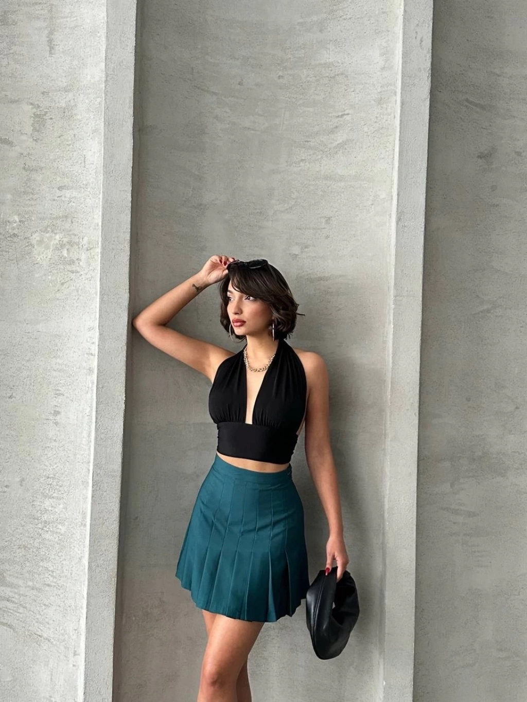 Çok şık ve trend bir görünüm elde etmenizi sağlayacak olan Yeşil Pileli Düğmeli Etek, gardırobunuzun vazgeçilmez parçalarından biri olmaya aday! Hem şık hem de rahat kesimi ile günlük hayatta veya özel davetlerde tercih edebileceğiniz bu etek, tarzınızı yansıtmanızı sağlayacak.
