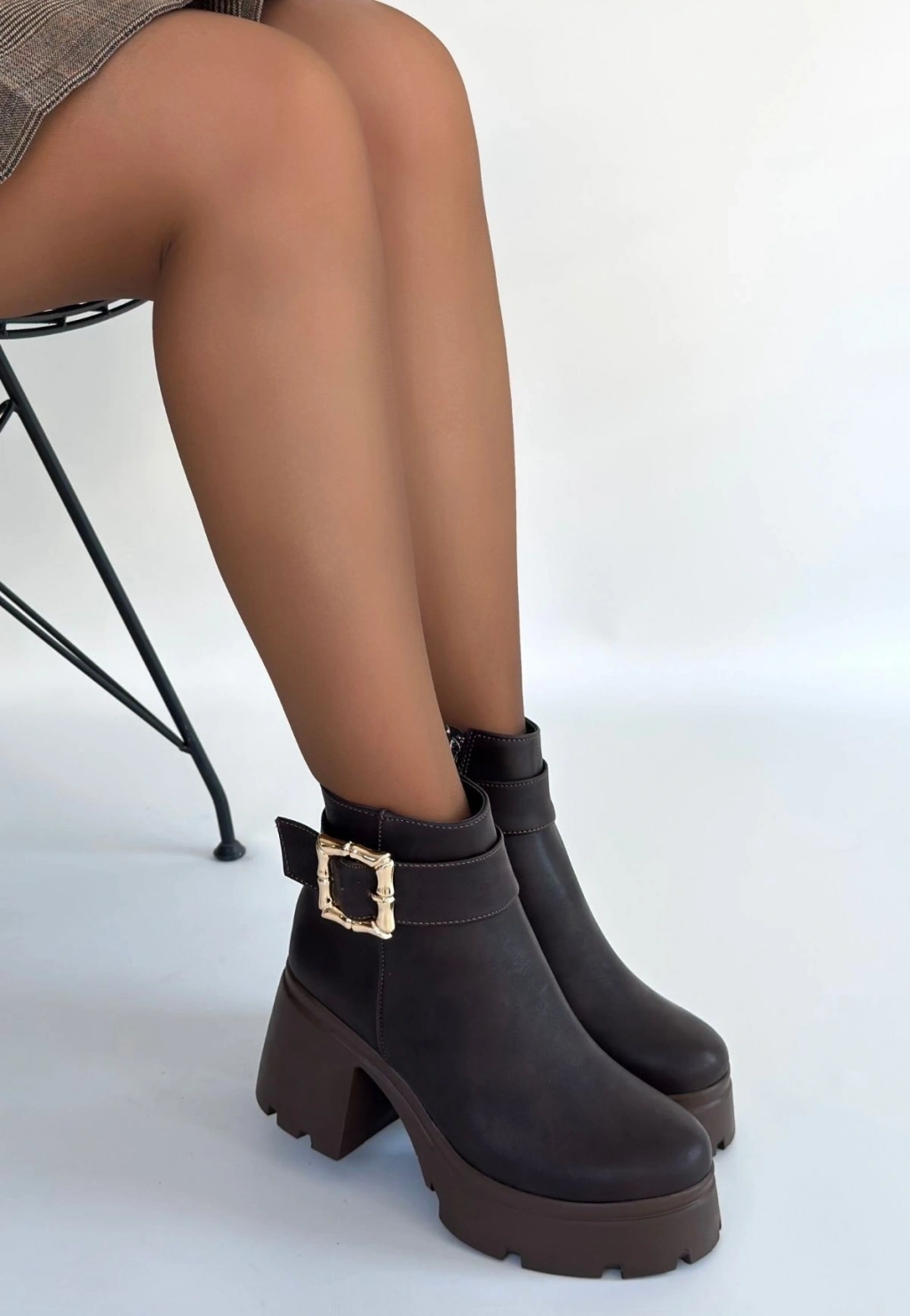 • Pinma Acı Kahve Cilt Topuklu Bot