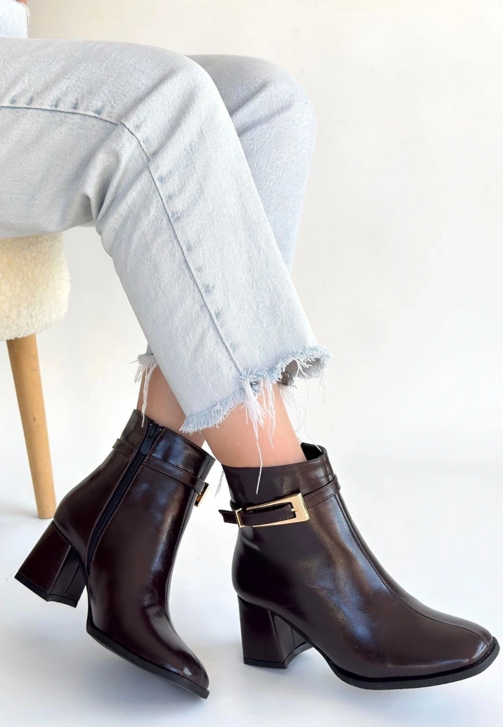 • Rivav Acı Kahve Rugan Topuklu Bot