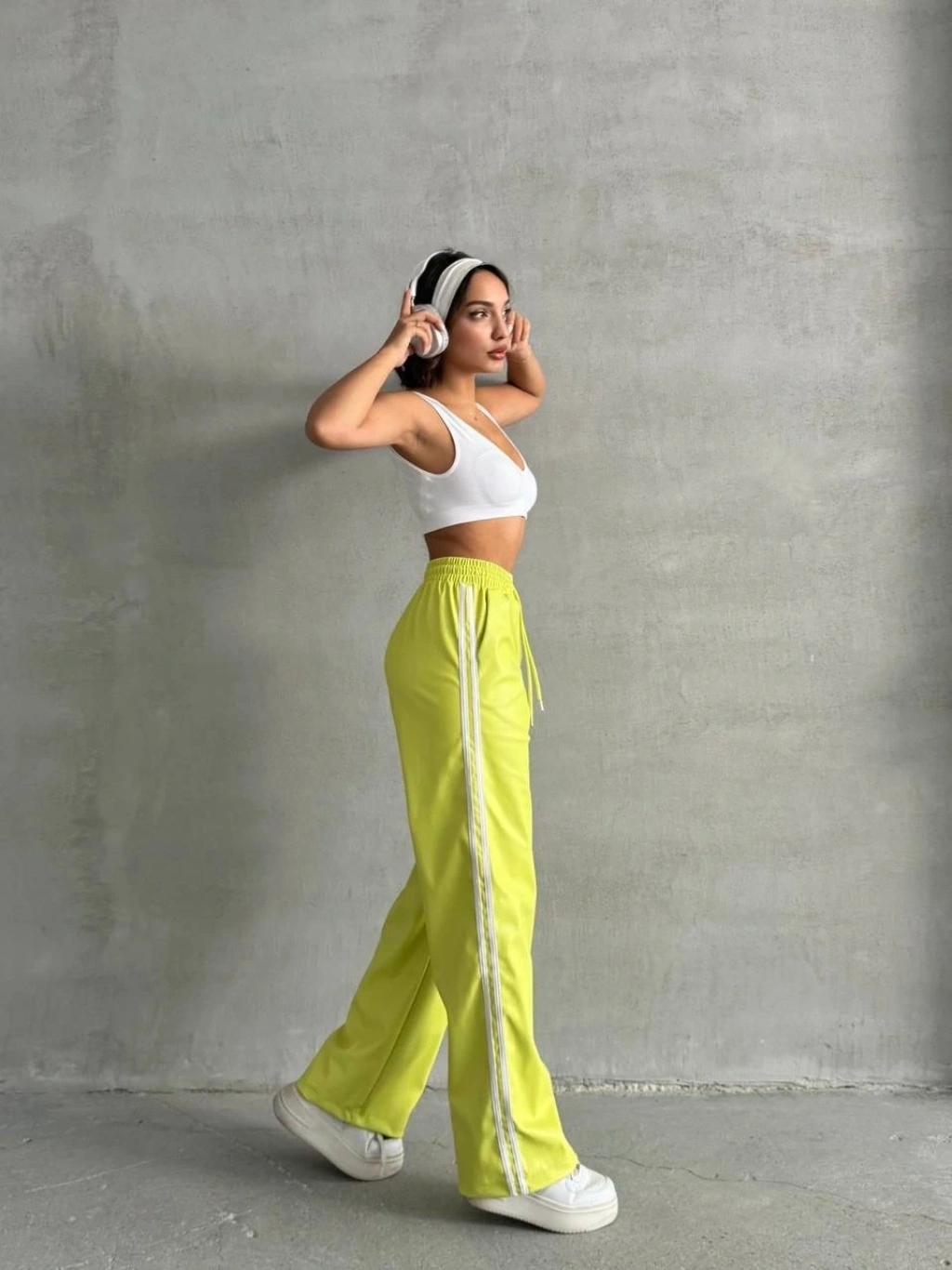 - Şerit detayları pantolonun şıklığını ön plana çıkarır.