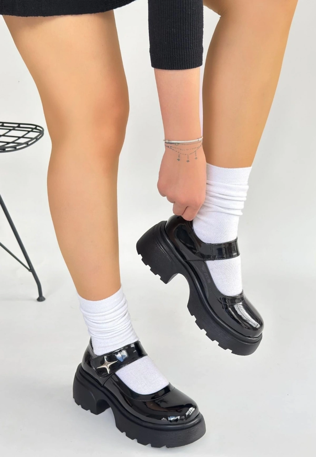 Siyat Siyah Rugan Dolgu Topuk Oxford Ayakkabı