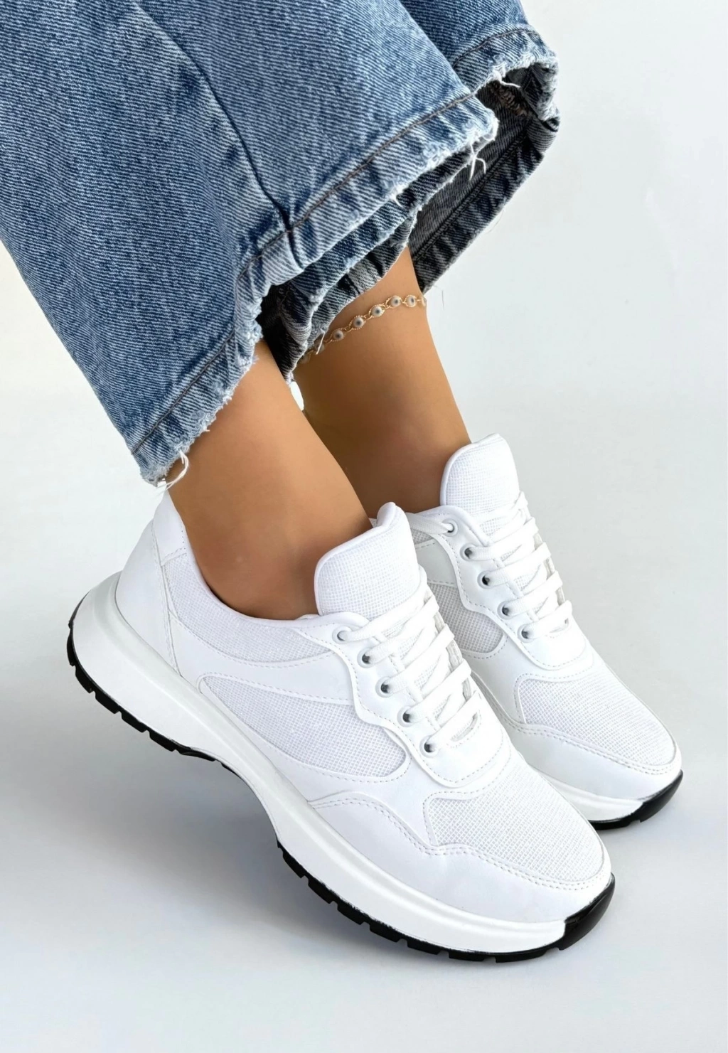 • Slar Beyaz Cilt Bağcıklı Spor Ayakkabı