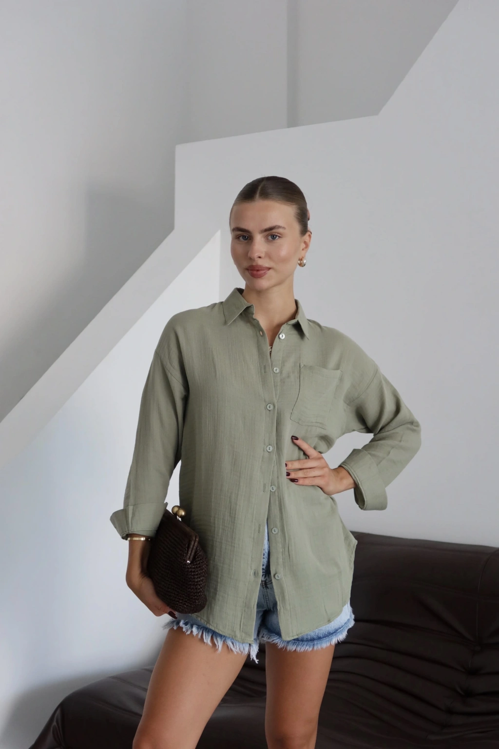 Şıklığı ve konforu bir arada arayan kadınların tercihi olan tek cepli müslin gömlek, sizin de favoriniz olmaya aday!
