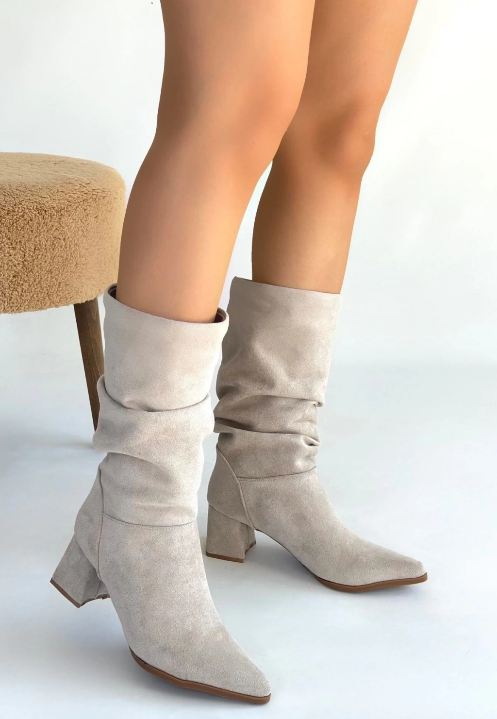 Detay: Topuklu Diz Altı Körüklü Çizme
